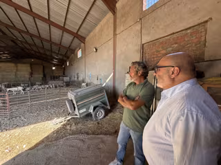 El parlamentario andaluz de Vox por Córdoba, Alejandro Hernández (dcha.), visita una explotación ganadera. - VOX
