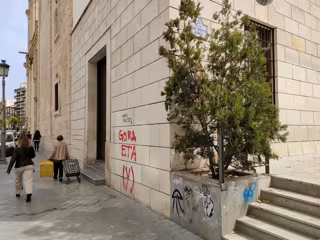 Una pintada de 'gora ETA' en letras rojas mancha una de las paredes de la plaza Luis Portero en Granada, dedicada al fiscal jefe del Tribunal Superior de Justicia de Andalucía (TSJA) asesinado por la banda terrorista ETA el 9 de octubre del 2000 en la puerta de su casa, tal y como ha denunciado su hijo a través de las redes sociales.