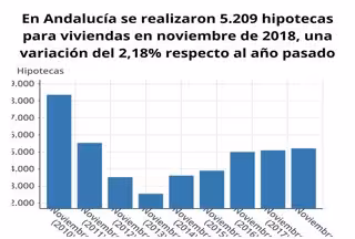 El número de hipotecas constituidas sobre viviendas ha aumentado en Andalucía un 2,2 por ciento en penúltimo mes del año respecto al mismo periodo del año anterior, aunque ha caído un 13 por ciento en la variación mensual, hasta las 5.209 operaciones en total.