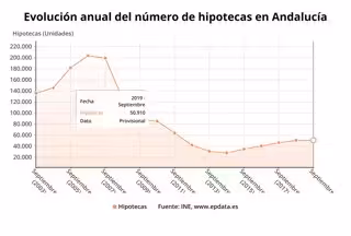 Evolución anual de las hipotecas en Andalucía, con datos hasta el pasado mes de septiembre. - EP DATA