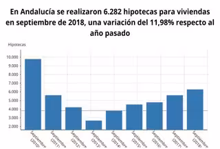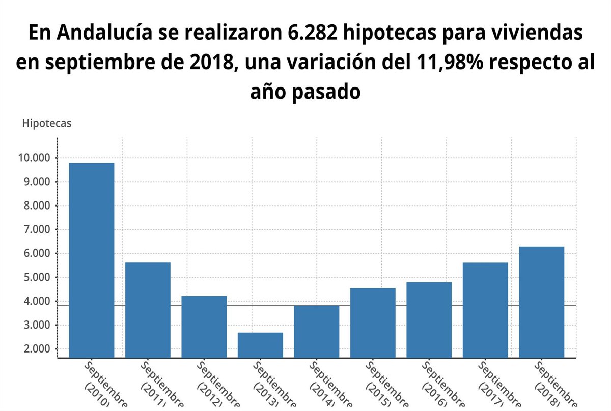 El número de hipotecas constituidas sobre viviendas ha aumentado en Andalucía un 12 por ciento en el noveno mes del año respecto al mismo periodo del año anterior, y de igual manera se ha incrementado un cinco por ciento en la variación mensual, hasta las 6.282 operaciones en total.