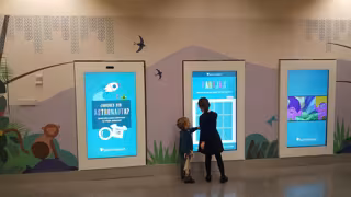 La sala de espera de urgencias pediátricas dispone de un área de entretenimiento para los niños, se trata de tres pantallas táctiles que les invitan a interactuar con juegos y actividades infantiles. Así, mientras los más pequeños están en la sala de espera, ya sea como pacientes o acompañando a hermanos u otros familiares, pueden entretenerse jugando con las pantallas.