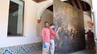 El Hospital de San Juan de Dios de Granada inicia la intervención de conservación y restauración de una de las joyas del Barroco: el lienzo 'Persecución de los hospitalarios en Polonia' (también conocido como 'Martirio de varios frailes hospitalarios'), una obra de gran formato del siglo XVII, ubicada históricamente en la escalera monumental del hospital, edificio declarado Bien de Interés Cultural en 1980.