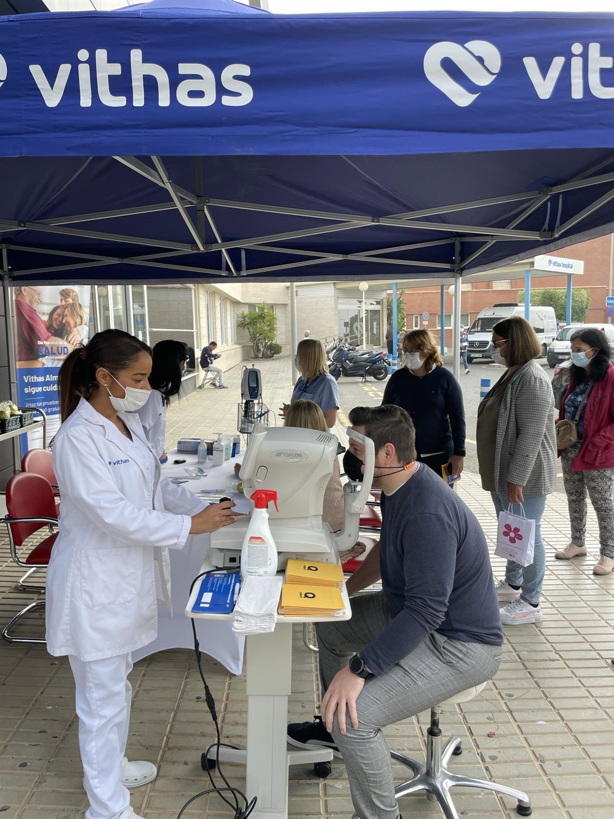 Pruebas similares a las de Sevilla se realizaron el día 10 en Vithas Almería, con un circuito de glucemia, toma de tensión, ejercicios de fuerza y pesaje, además de incidir también en el control de la visión. Con respecto a esta última prueba, el doctor Joaquín Fernández, director médico de la Unidad de Oftalmología del Hospital Vithas Almería, Qvisión, aclara que "la mayoría de los pacientes con glaucoma están asociados a niveles elevados de presión intraocular (PIO), excepto en el glaucoma normotensivo. En este tipo de glaucoma las fibras del nervio óptico están dañadas, aunque presentan una PIO dentro de la normalidad".