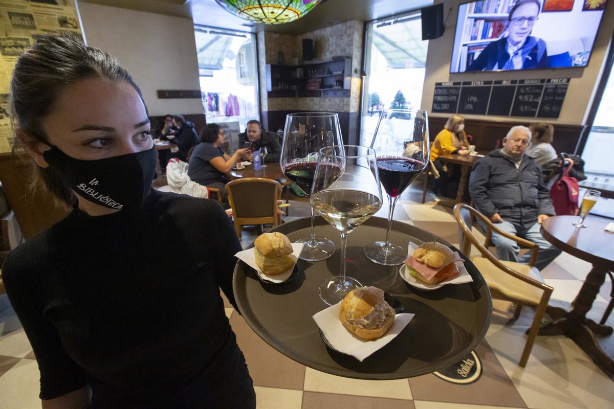 Archivo - Camarera con una bandeja en un restaurante en una imagen de archivo - Jorge Peteiro - Europa Press - Archivo