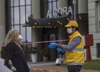 Personal sanitario en el Hotel Alcora de Sevilla tras ser adaptado como hospital - María José López - Europa Press