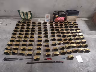 Los agentes intervinieron tras recibir un aviso alertando de dos hombres que manipulaban las vallas. Una patrulla los sorprendió al lado del vehículo en cuyo maletero tenían las pletinas y las herramientas necesarias para sustraerlas.