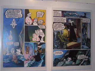 El visitante podrá encontrar en esta muestra ilustraciones realizadas por Forges y Azpiri para el libro 'Drácula' de Ediciones B., con el que se inauguró una colección única e irrepetible de estos dos grandes dibujantes en una combinación maravillosa sin precedentes, en la que se mezcla el color de Azpiri y el blanco y negro de Forges.