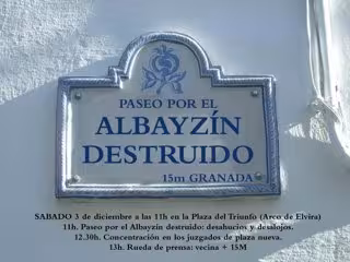 El colectivo de 'indignados' del Movimiento 15M ha convocado para este sábado 3 de diciembre un paseo por el "Albaicín destruido" con el objetivo de narrar y poner de manifiesto los intentos de desalojo y desahucios que se han hecho en el barrio, como el de la Casa Cuna, Cuesta Marañas o la Casa del Aire.
