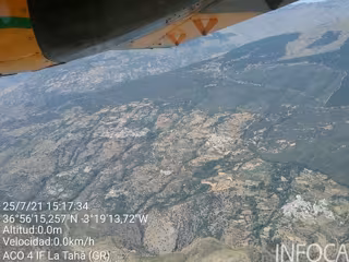 Medio aéreo del Infoca sobrevolando el área donde se declaró el incendio de La Taha (Granada) - TWITTER INFOCA