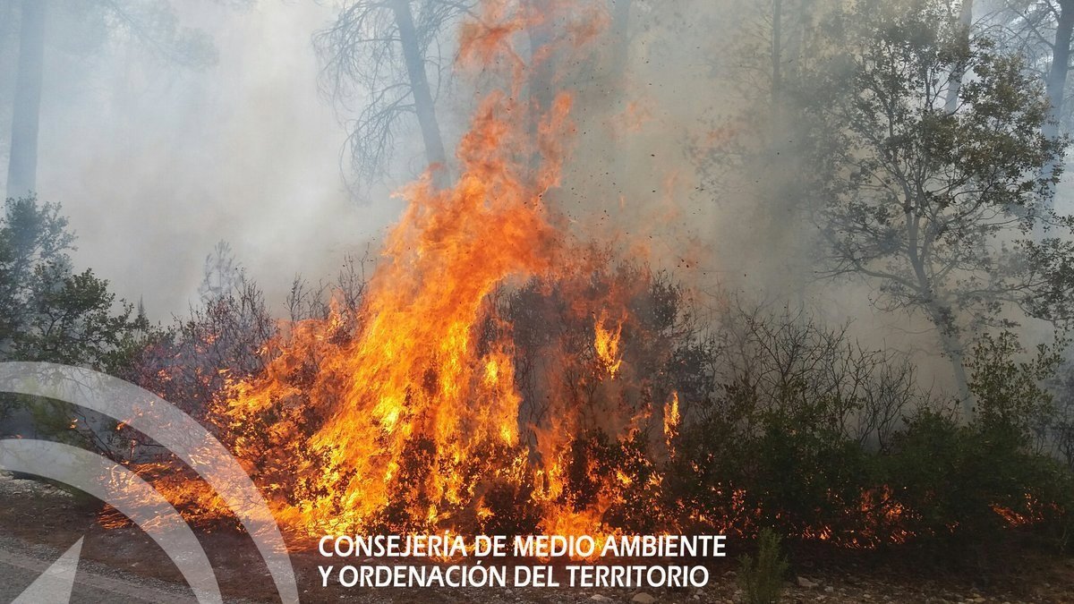 En la extinción del incendio están actuando por tierra tres retenes de especialistas en extinción, formados cada uno por siete efectivos, un camión autobomba y un agente de medio ambiente.