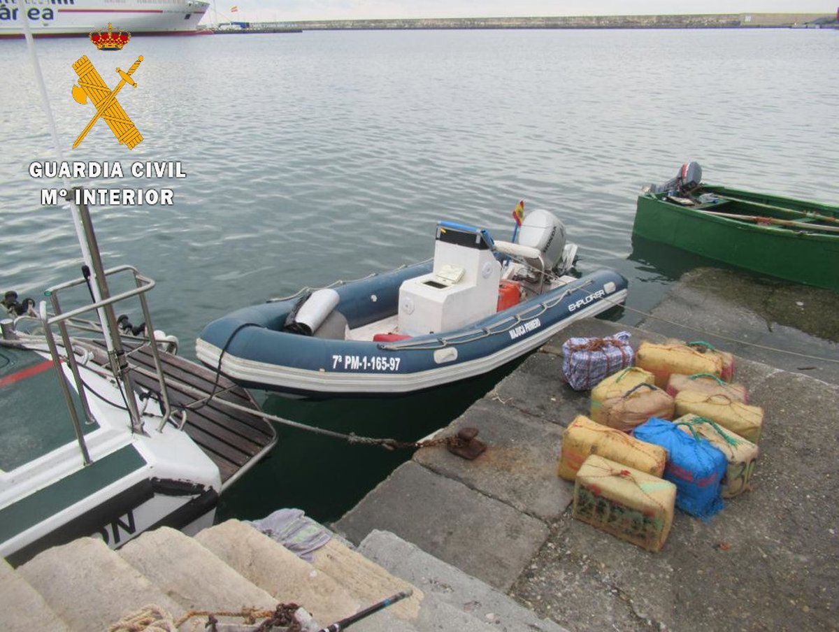 Los agentes del Servicio Marítimo interceptaron dicha embarcación veinte minutos después a unas siete millas de la costa y comprobaron que no se trataba de una embarcación con inmigrantes, sino de una narcolancha, una embarcación semirrígida de 6 metros de eslora por 1,5 metros de manga, con un motor fuera borda de 90 CV. Iba ocupada por dos personas que transportaban once fardos de hachís ocultos bajo una lona.