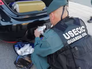 Tras revisar minuciosamente el interior del coche, los agentes se dieron cuenta de que un embellecedor de la parte trasera del maletero estaba anormalmente deformado y observaron un paquete de color blanco.
