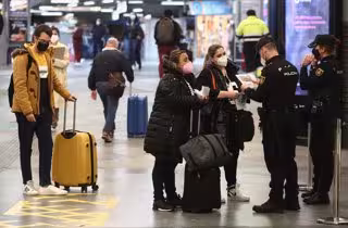 Agentes de la Policía Nacional piden justificantes durante controles de movilidad en la estación de tren de Atocha, en Madrid (España), a 26 de marzo de 2021. - Eduardo Parra - Europa Press