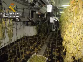 En el registro, la Guardia Civil y la Policía Local descubrieron 987 plantas colgadas secándose y 621 aún en sus macetas. También encontraron una habitación habilitada como secadero con más de 34 kilos de cogollos de marihuana secos y dispuestos para su envasado y posterior distribución.