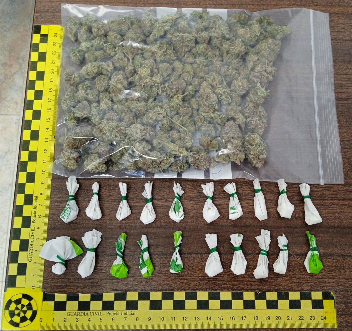 La Guardia Civil procedió a la investigación de uno de los ocupantes del vehículo, como presunto autor de un delito de tráfico de droga, el cual reconoció que era de su propiedad. Investigado, drogas intervenidas y diligencias instruidas han sido puestos a disposición de la Autoridad Judicial