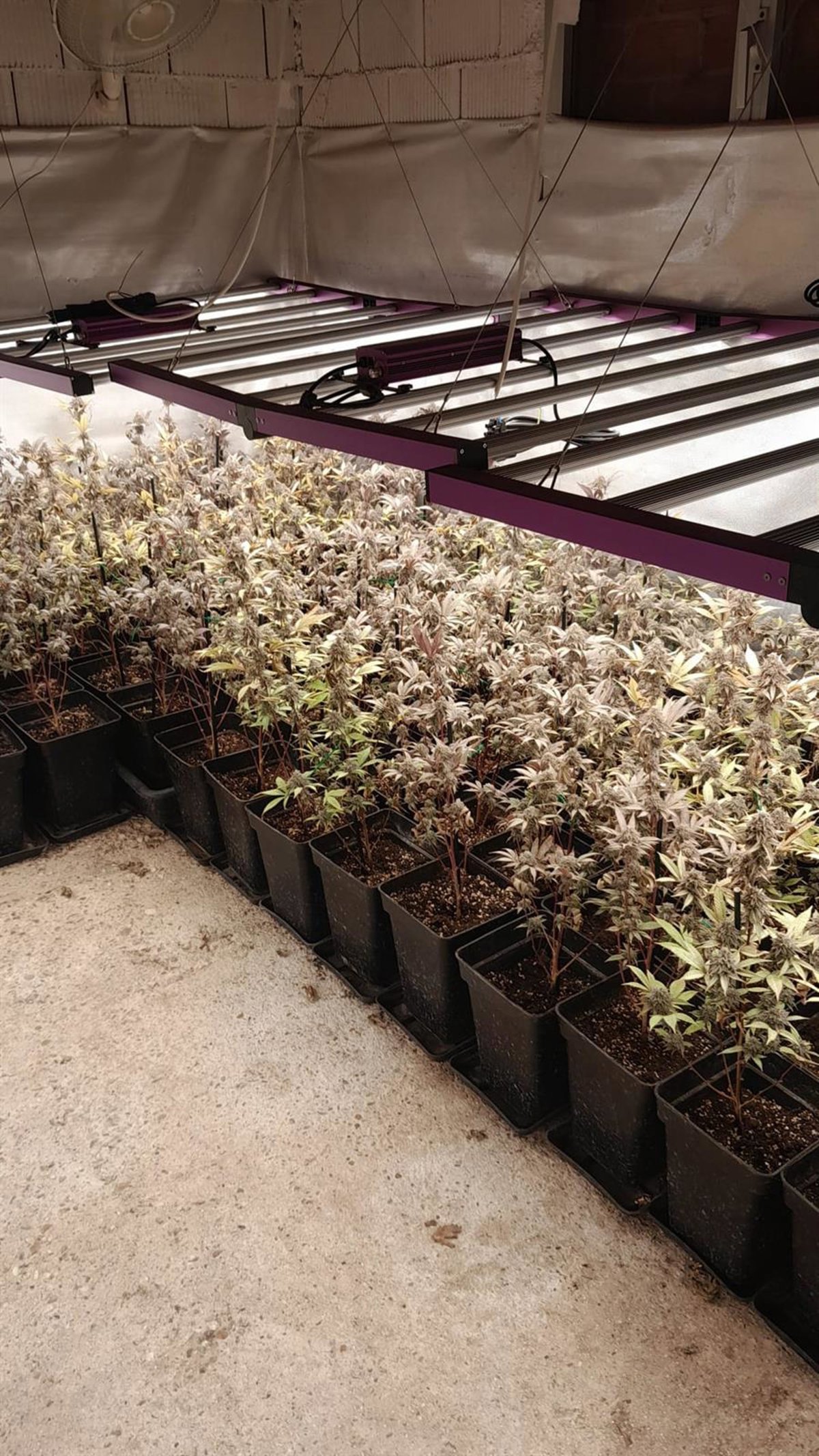Una vez recabadas todas las informaciones necesarias, los guardias civiles realizaron un registro en el interior de la misma, donde localizaron una plantación de marihuana, compuesta de 647 plantas. La nave había sido montada con todos los útiles necesarios para el cultivo y el mantenimiento de este tipo de plantaciones ilegales. Las plantas de encontraban en un avanzado estado de floración y próximo a su recolección.