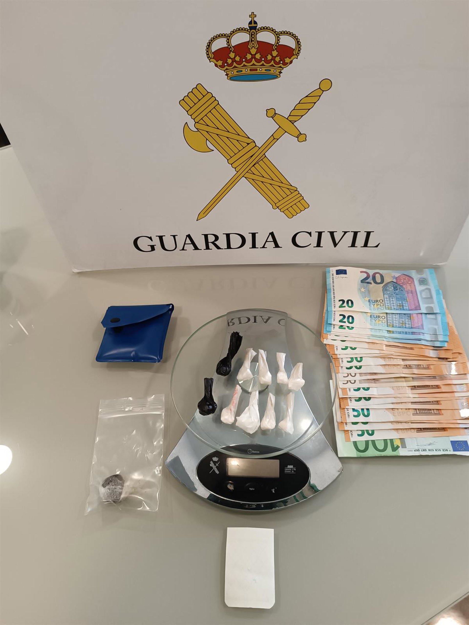 Tras parar el vehículo, el conductor mostró una actitud nerviosa y titubeante, unido al fuerte olor a hachís que desprendía el interior del vehículo, de modo que los guardias civiles sospecharon que transportaba algún tipo de droga, por lo que registraron al conductor y el turismo, localizando 1.100 euros en billetes fraccionados, seis gramos de cocaína y cinco gramos de hachís.
