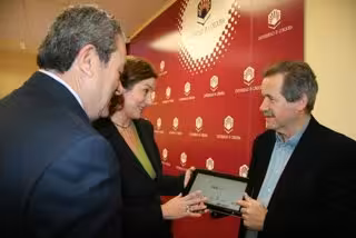 Al acto de presentación de hoy asistieron también la presidenta del Consejo Social de la UCO, Anabel Carrillo, y el director general de Grafe, José Gurrau, en representación de la empresa que se encargará de la fabricación y distribución del 'ifreetablet', hecho en Andalucía.