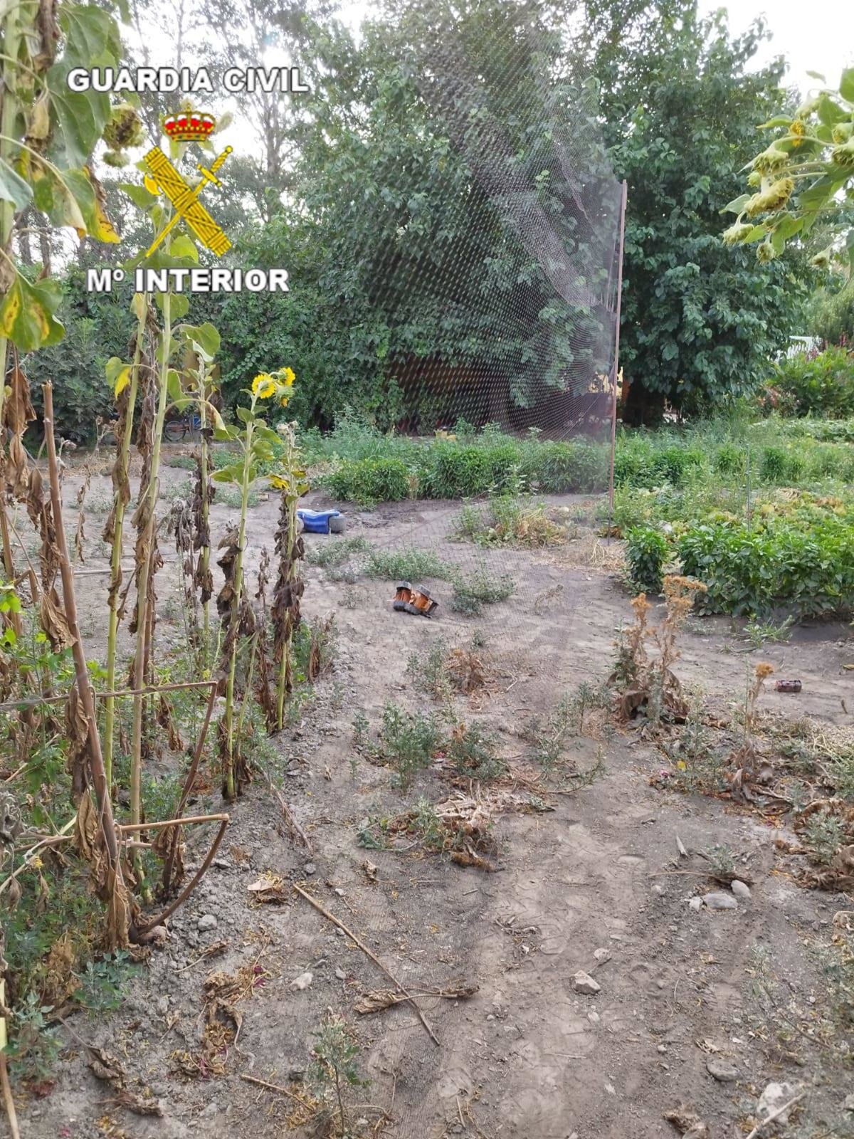 Cuando los agentes miraron detrás de la valla vieron dos jaulones con un número importante de estas aves fringílidas y les extrañó ver entre los girasoles que había en el huerto cuatro postes de unos cuatro metros de altura que sujetaban una red "japonesa" o invisible de unos ocho metros de largo por tres de alto.