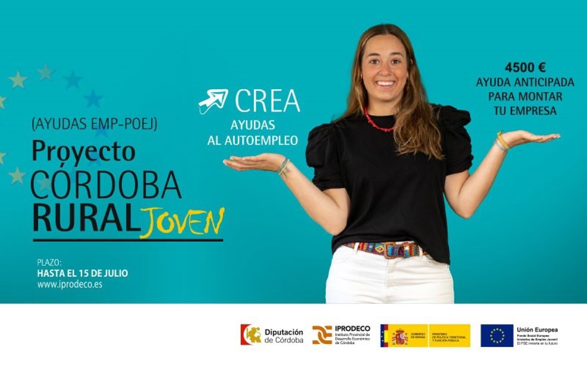 El Instituto Provincial de Desarrollo Económico (Iprodeco) de la Diputación de Córdoba anticipa el abono de 4.500 euros a jóvenes emprendedores de entre 16 y 30 años que pongan en marcha sus propios negocios en alguno de los 64 municipios de la provincia integrados en la convocatoria del proyecto 'Córdoba Rural Joven Crea'.