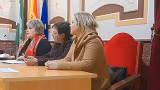 Aurora Rubio (izda.), durante un Pleno del Ayuntamiento de Belmez. - IU