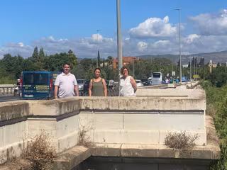 Archivo - Irene Ruiz (centro), entre los ediles de IU Pedro García y Alba Doblas, en el Puente de San Rafael, que no ha sido entoldado por el Ayuntamiento. - IU - Archivo