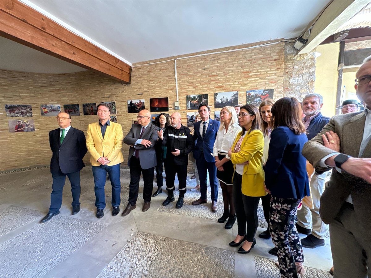 El alcalde, Agustín González, junto al teniente de Navío de la UME, José María García de Guadiana, y el comandante Miguel López, ha inaugurado este jueves la muestra, en un acto que también ha contado, entre otros, con el subdelegado del Gobierno, Manuel Fernández, y la vicepresidenta tercera de la Diputación, África Colomo.