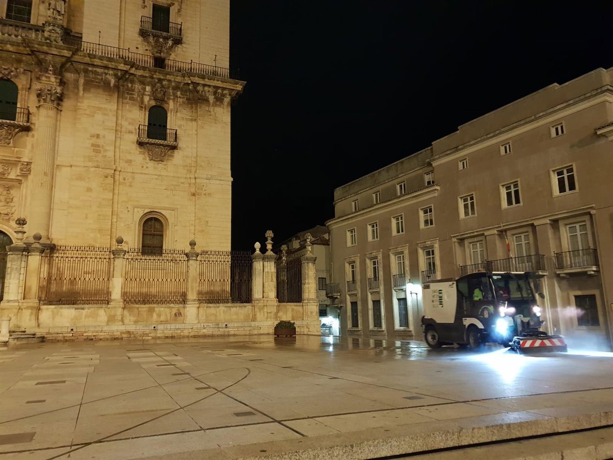 Mediante baldeos con agua presión bien manuales bien con camiones o con máquinas de tipo Aquadyme se ha reforzado el trabajo diario y se ha movilizado pese a tratarse de un festivo al personal de la concesionaria para realizar trabajos de riego, limpieza a presión y desinfección, según ha informado el Consistorio en una nota de prensa.