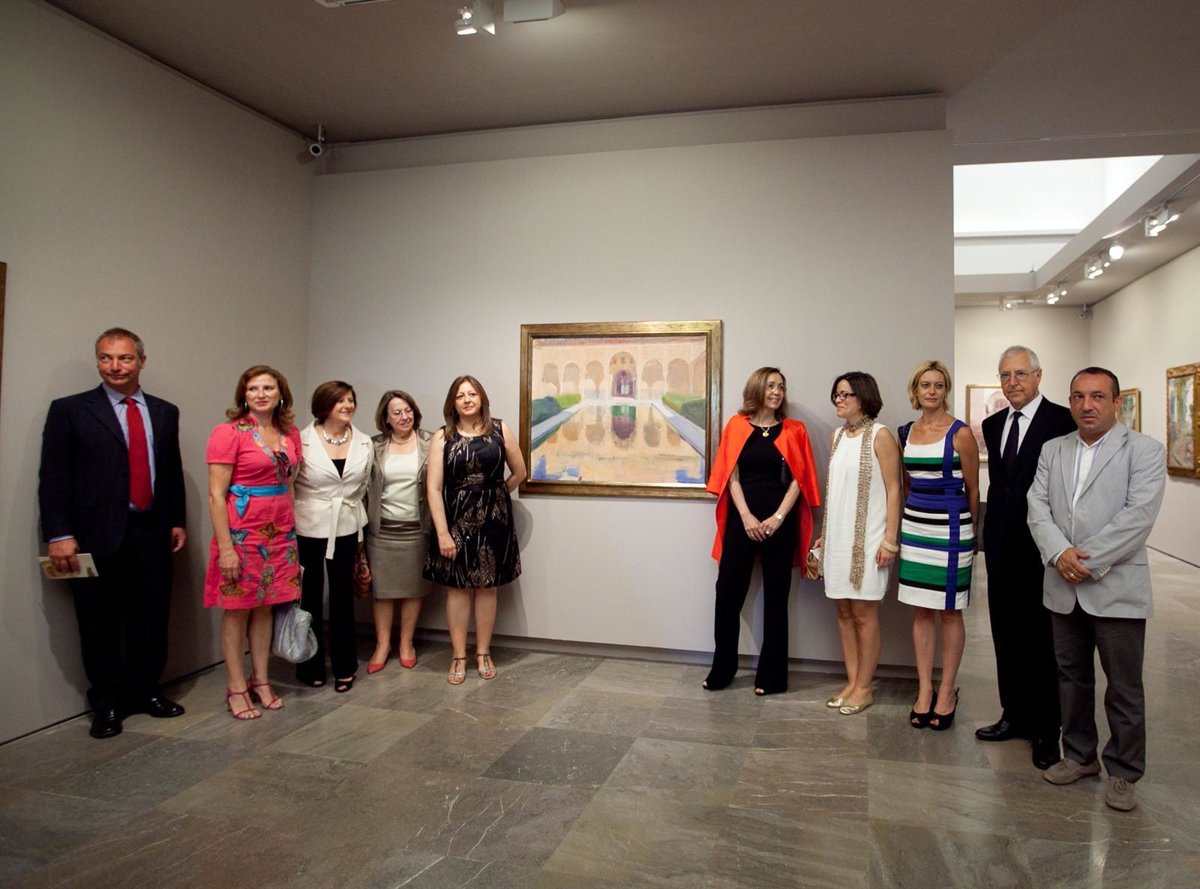Representantes del mundo de la cultura andaluza, entre los que se encuentran la secretaria general de Cultura de la Junta de Andalucía, Montserrat Reyes, junto a los responsables de las tres instituciones implicadas en el proyecto, como María del Mar Villafranca, directora general del Patronato de la Alhambra y Generalife, y Consuelo Luca de Tena, directora del Museo Sorolla, han asistido a la inauguración de la exposición, compuesta por cuadros provenientes en su mayoría del Museo Sorolla (23) y de instituciones y colecciones privadas de todo el mundo (22), algunas de las cuales se expondrán al público por primera vez.