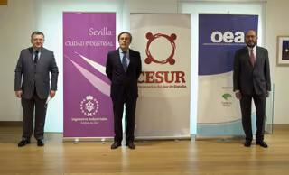Por primera vez, tres instituciones se han unido para señalar las líneas de política industrial que precisa Andalucía, estableciendo los parámetros sociales necesarios para que esta política exista, en un encuentro organizado por la Asociación de Empresarios del Sur de España (Cesur) y el Observatorio Económico de Andalucía (OEA), que ha contado con la colaboración del Colegio de Ingenieros Industriales de Andalucía Occidental, en las jornadas 'Por una política industrial eficiente y sostenible'.