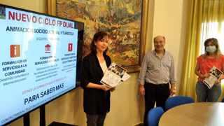 La alcaldesa de Priego de Córdoba, María Luisa Ceballos; la concejal de Educación, Encarnación Valdivia; y el director del IES Álvarez Cubero, Francisco Durán, han anunciado que la Junta de Andalucía ha concedido a la localidad el ciclo de FP Dual de Animación Sociocultural y Turística, que se impartirá en el mencionado instituto prieguense.