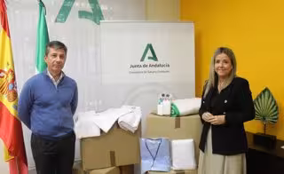 La delegada territorial de la Salud y Consumo de la Junta de Andalucía en Jaén, Elena González, ha hecho entrega del material al director de Cáritas Diocesana de Jaén, Rafael Ramos, en un encuentro mantenido en la sede de la Delegación Territorial de Salud y Consumo.