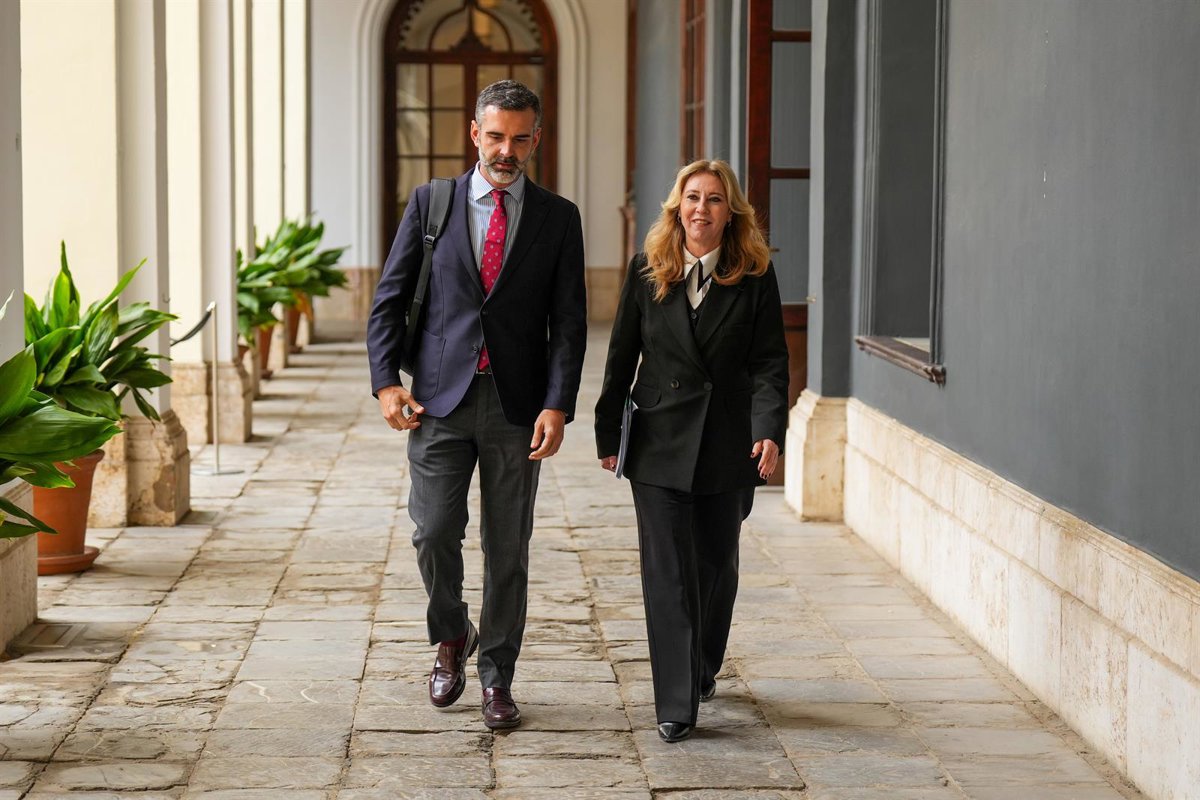 La consejera de Economía, Hacienda y Fondos Europeos y portavoz del Gobierno, Carolina España (i) y el consejero de Agricultura, Agua y Desarrollo Rural, Ramón Fernández-Pacheco (d). - Francisco J. Olmo - Europa Press