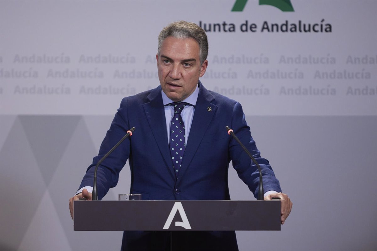 El consejero de la Presidencia y portavoz del Gobierno, Elías Bendodo, este martes en la rueda de prensa tras el Consejo de Gobierno. - Joaquin Corchero - Europa Press