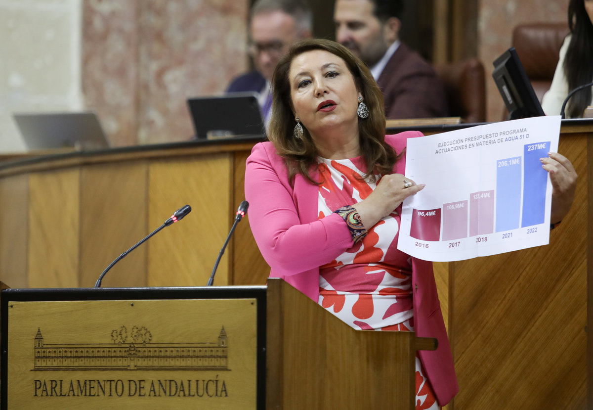 "Tiene que mirar en su Consejería, deje de movilizar y ejecute", ha sostenido la parlamentaria socialista, quien ha esgrimido como emblema de los problemas con el abastecimiento de agua "los cortes de agua en las sierras de Sevilla, de Jaén y de Córdoba".