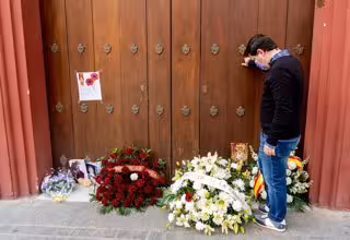 En la puerta de la Iglesia del Baratillo se acumulan ramos de flores y algunos fieles debido a la suspensión de la Semana Santa de Sevilla por el estado de alarma con el coronavirus COVID-19, foto de archivo - Europa Press - Archivo