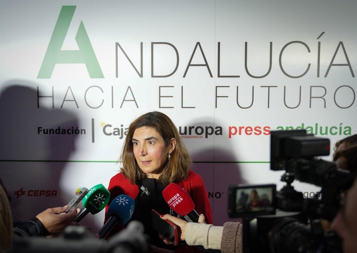 La consejera de Empleo, Rocío Blanco, este lunes en declaraciones a los medios antes de participar en el foro de Europa Press Andalucía 'Andalucía hacia el futuro'. - MARÍA JOSÉ LÓPEZ/EUROPA PRESS