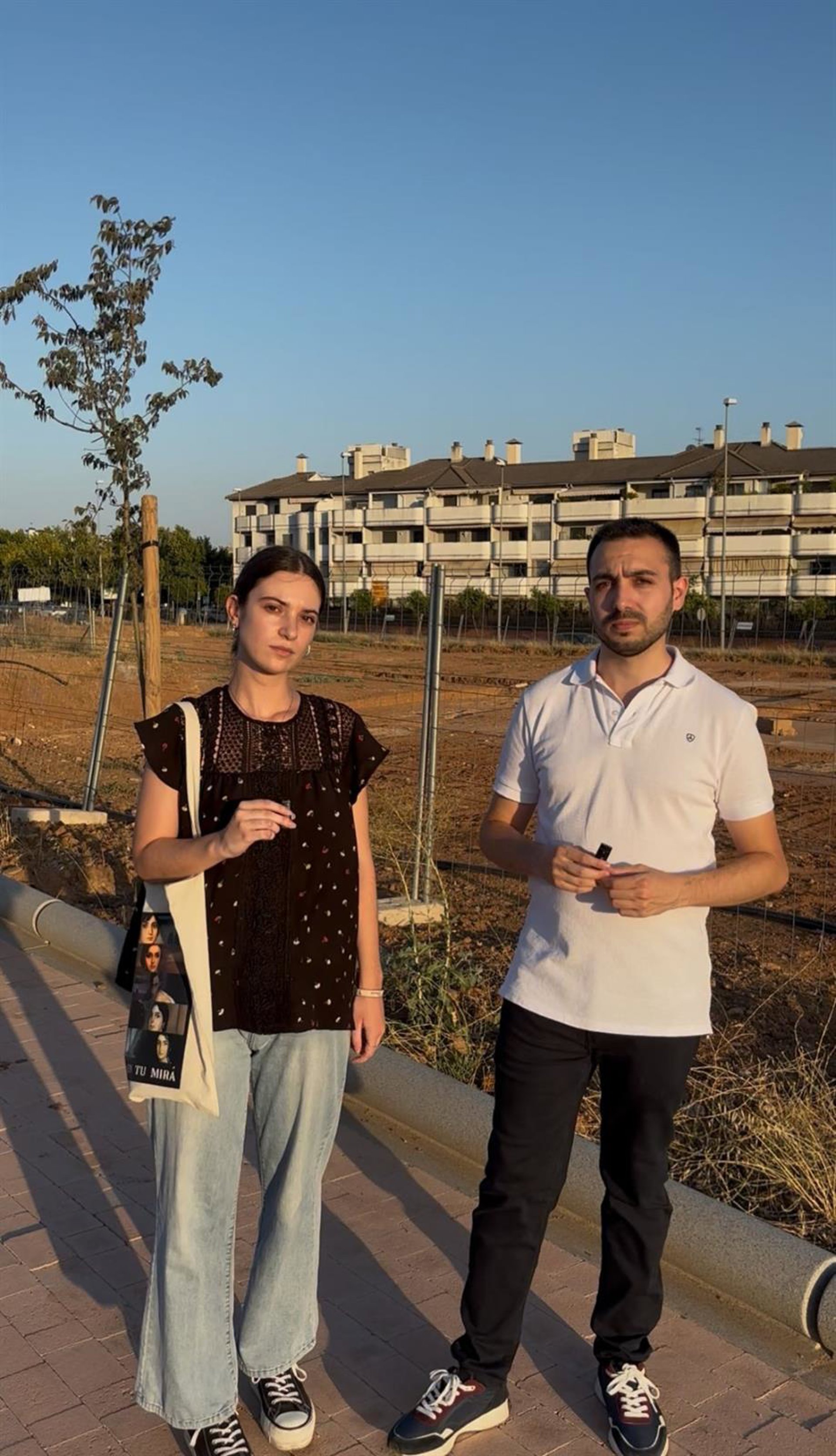 José Antonio Lara y Lucía García en la zona donde han aparecido los restos arqueológicos. - JUVENTUDES SOCIALISTAS