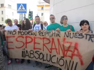 A las puertas del juzgado donde se celebraba el juicio se ha concentrado un grupo de unas cincuenta personas en solidaridad con los vecinos que estaban llamados a sentarse en el banquillo. Lola Castillo ha señalado a Europa Press que el objetivo era "sentirnos arropados" y dejar claro que "no hemos cometido ningún delito, solo hemos defendido el derecho a una vivienda que recoge la Constitución".