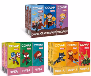 Lácteos Covap ha lanzado una edición especial en sus batidos de 200 mililitros con los principales personajes de Marvel gracias a un acuerdo alcanzado con Tetra Pak y Disney.