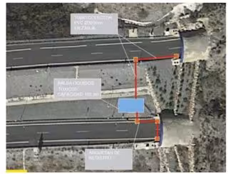 Ubicación balsa de recogida y sistema de drenaje de líquidos tóxicos proyectado para el túnel de Ramoncillos - MITMA