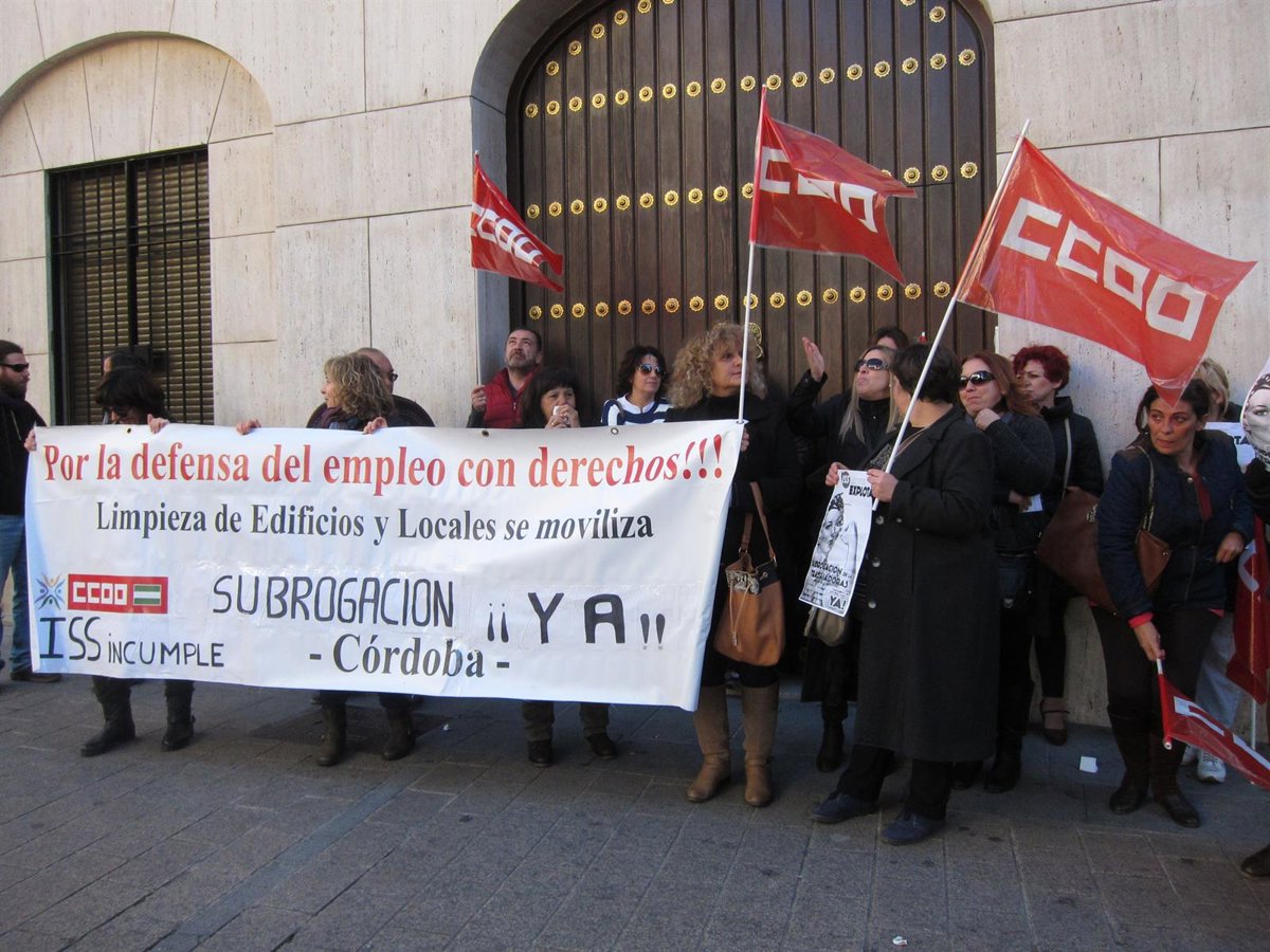 Desde el colectivo critican "los recortes" que están sufriendo, "los despidos encubiertos" y "los traslados forzosos de lugar de trabajo", al tiempo que han explicado que tras la adjudicación de los servicios de limpieza a la empresa ISS por parte de la administración de Justicia en Córdoba, a través de un concurso público, unos cinco empleados "no han sido subrogados".
