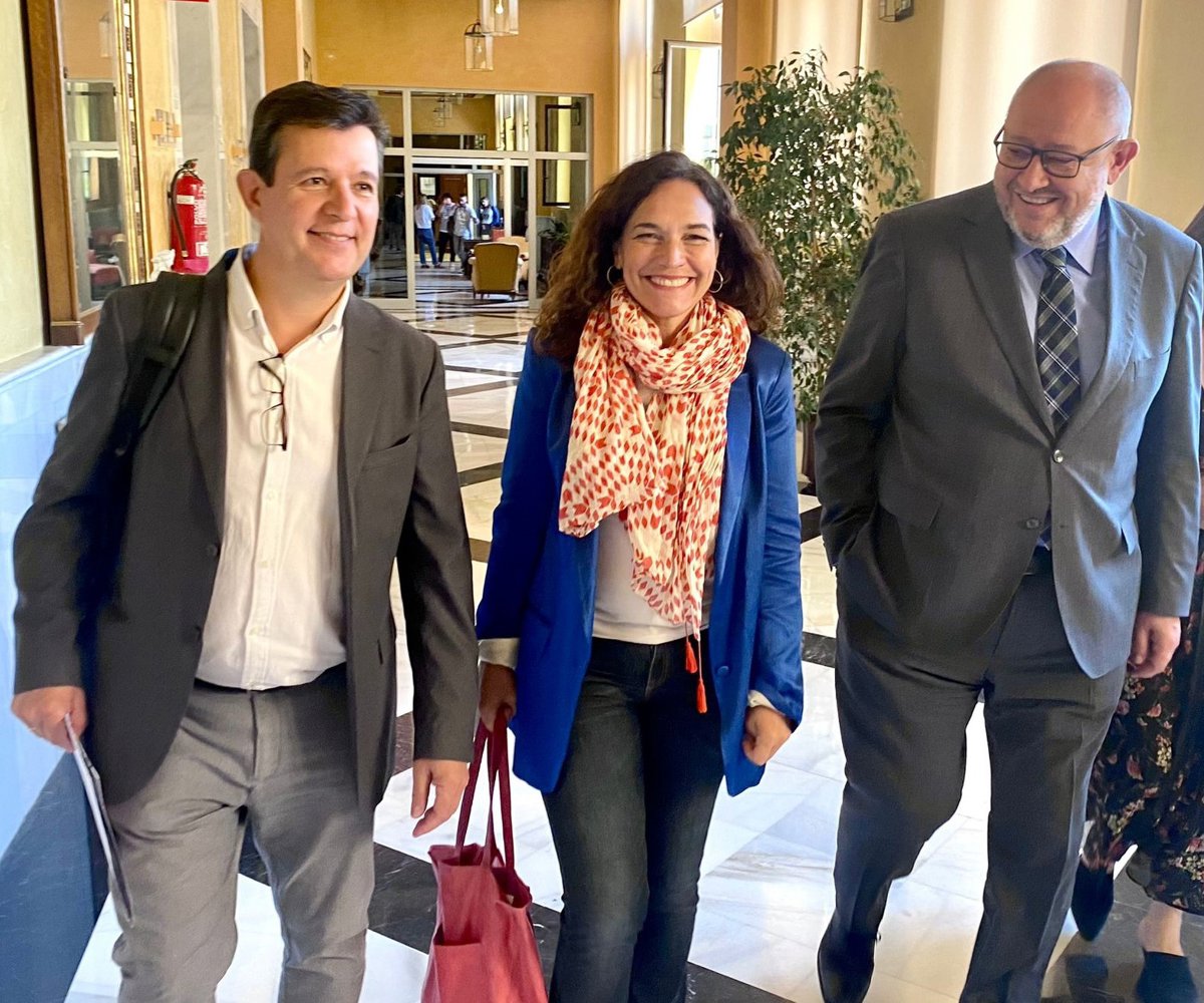 Lina Gálvez (centro), junto a Manuel Torralbo (dcha.), en el Rectorado de la UCO. - PSOE
