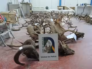 En concreto, en el momento de la inspección se contabilizaron un total de 247 cabezas. De todas éstas, no se pudo acreditar la procedencia de 33 cabezas de venado, cuatro cabezas de muflón, así como la de un corzo; todas ellas disecadas en hueso, y además, en el interior de un congelador, se encontraban otras dos cabezas de muflón. Una vez que se consiga determinar la propiedad de las mismas, serán objeto de denuncia por no presentar la documentación acreditativa de su procedencia, transporte y precinto.