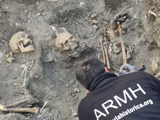 Trabajos sobre los primeros restos localizados de víctimas del fraquismo en una fosa común en el cementerio de Agrón (Granada) - ARMH