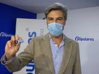 El diputado nacional del PP por Córdoba, Andrés Lorite, con el 'pen drive' que contiene el anteproyecto de Presupuestos Generales del Estado (PGE) para el ejercicio 2021. - PP - Archivo