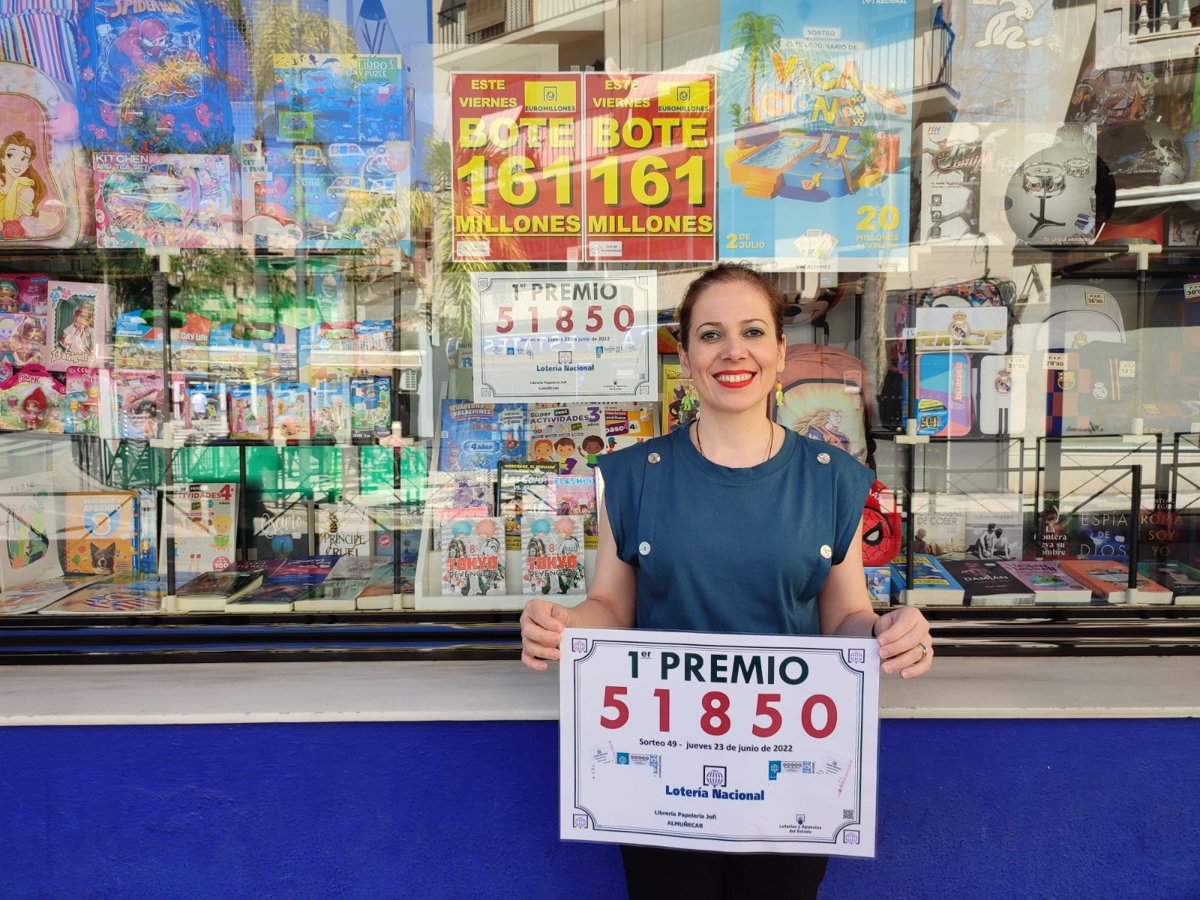 El sorteo de la Lotería Nacional de este pasado jueves dejó parte del primer premio, dotado con 300.000 euros al número, en la localidad granadina de Almuñécar, donde se distribuyó concretamente en el receptor mixto de Librería Jofi, en la avenida de Andalucía.