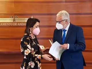 El Defensor del Pueblo andaluz, Jesús Maeztu, entrega el Informe Anual 2020 a la presidenta del Parlamento andaluz, Marta Bosquet - DEFENSOR DEL PUEBLO ANDALUZ