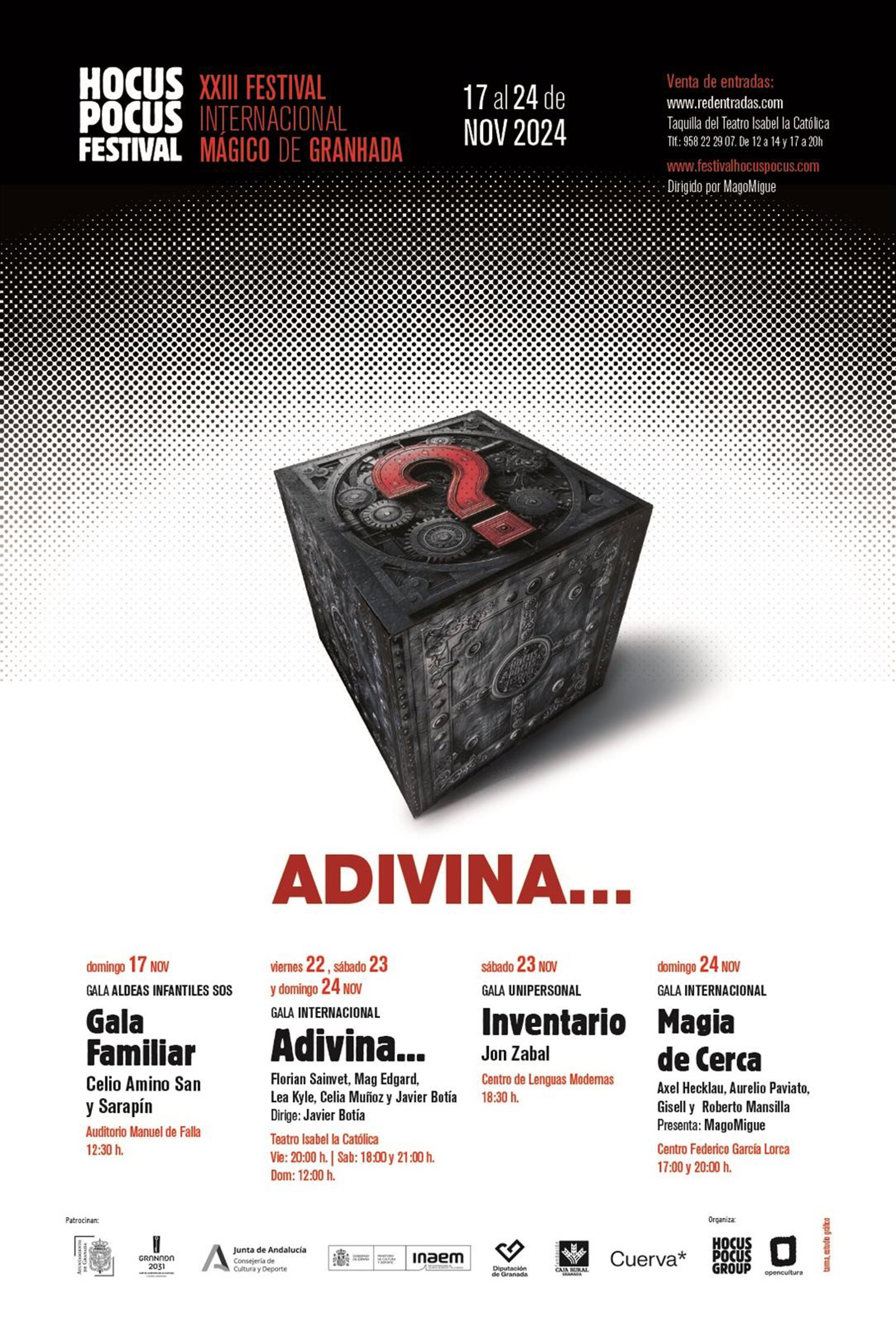 'Adivina', la gala principal del Hocus Pocus Festival, llega este viernes a las 20,00 horas al Teatro Isabel La Católica con reconocidos ilusionistas internacionales y nacionales como Florian Sainvet (Francia), Lea Kyle (Francia), Mag Edgar (España), Javier Botía (España) y Celia Muñoz (España).